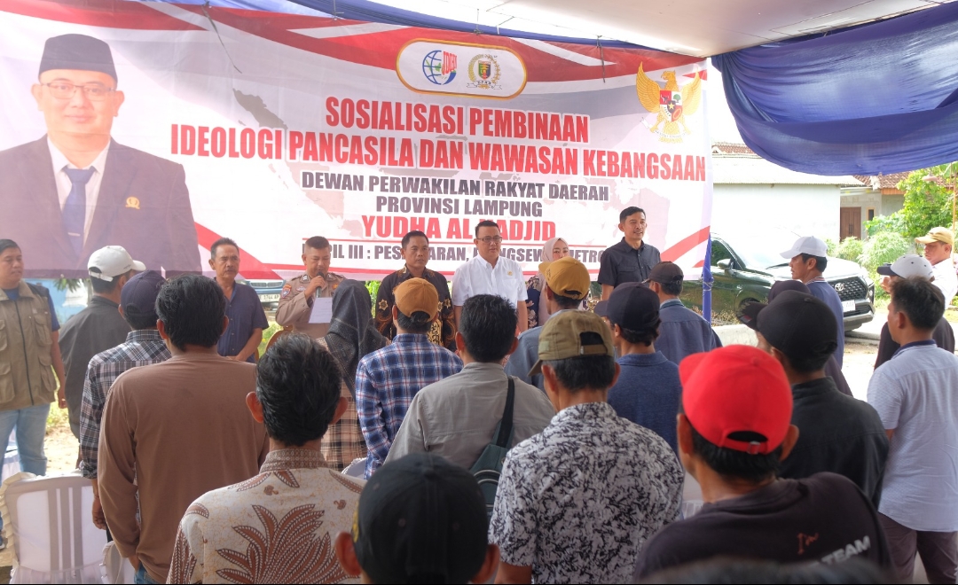 Bandar Lampung (infopenting.co.id) — Anggota DPRD Provinsi Lampung, Yudha Alhadjid, menggelar Sosialisasi Pembinaan Ideologi Pancasila dan Wawasan Kebangsaan di Desa Gedung Dalom, Kecamatan Way Lima, Kabupaten Pesawaran, Minggu (15/2/2026).